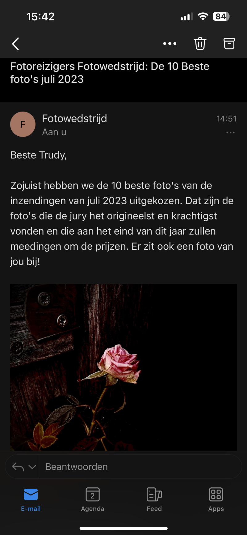 Hoe leuk is dit ...mijn ingezonden foto van vorige maand .... Uit alle inzendingen had de deskundige jury mijn foto uitgekozen bij de beste 10. Wat ben je dan trots. Het is natuurlijk ook wel een plaatje van een foto :-)