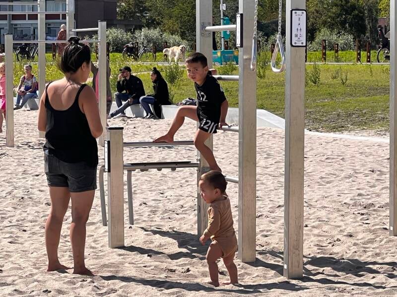 In Hoorn hebben ze een stadsstrandje gemaakt, de kinderen kunnen daar heerlijk even spelen ..